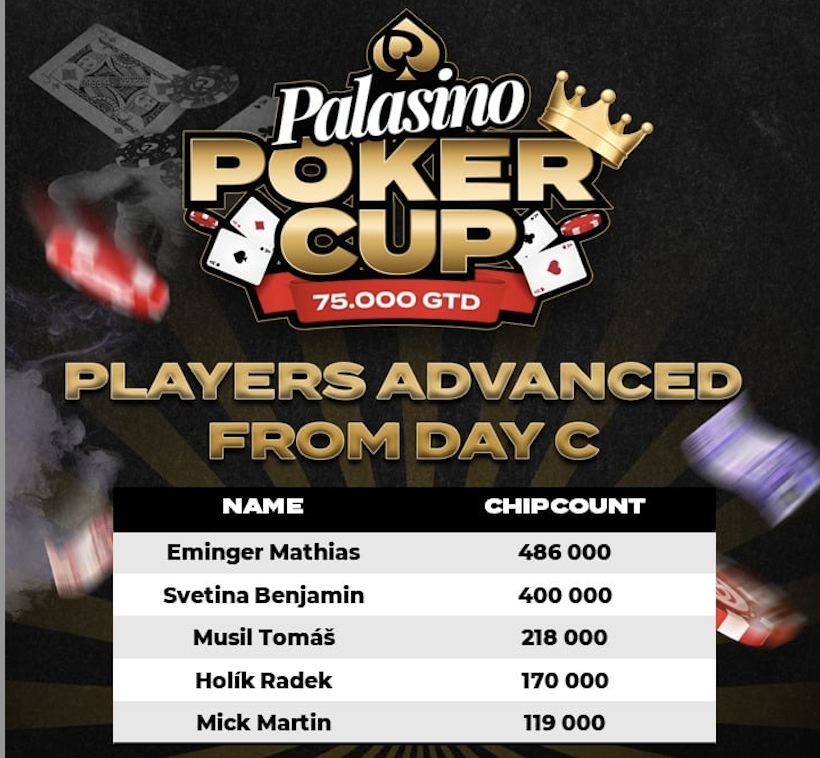 V českom poker roome Palasino Excalibur City aktuálne prebieha viacdňový turnaj Palasino Poker Cup, ktorý má garanciu nastavenú na fantastických €75.000 pri vklade €150. Turnaj už má za sebou úvodné tri flighty a v tých sme zatiaľ spoznali prvých 16 postupujúcich. Na programe je ešte trojica flightov, pričom Palasino sa nachádza len približne hodinu jazdy od slovenských hraníc a ak ešte nemáte program na víkend, pri čítaní nasledujúcich riadkov by ste mali spozornieť.