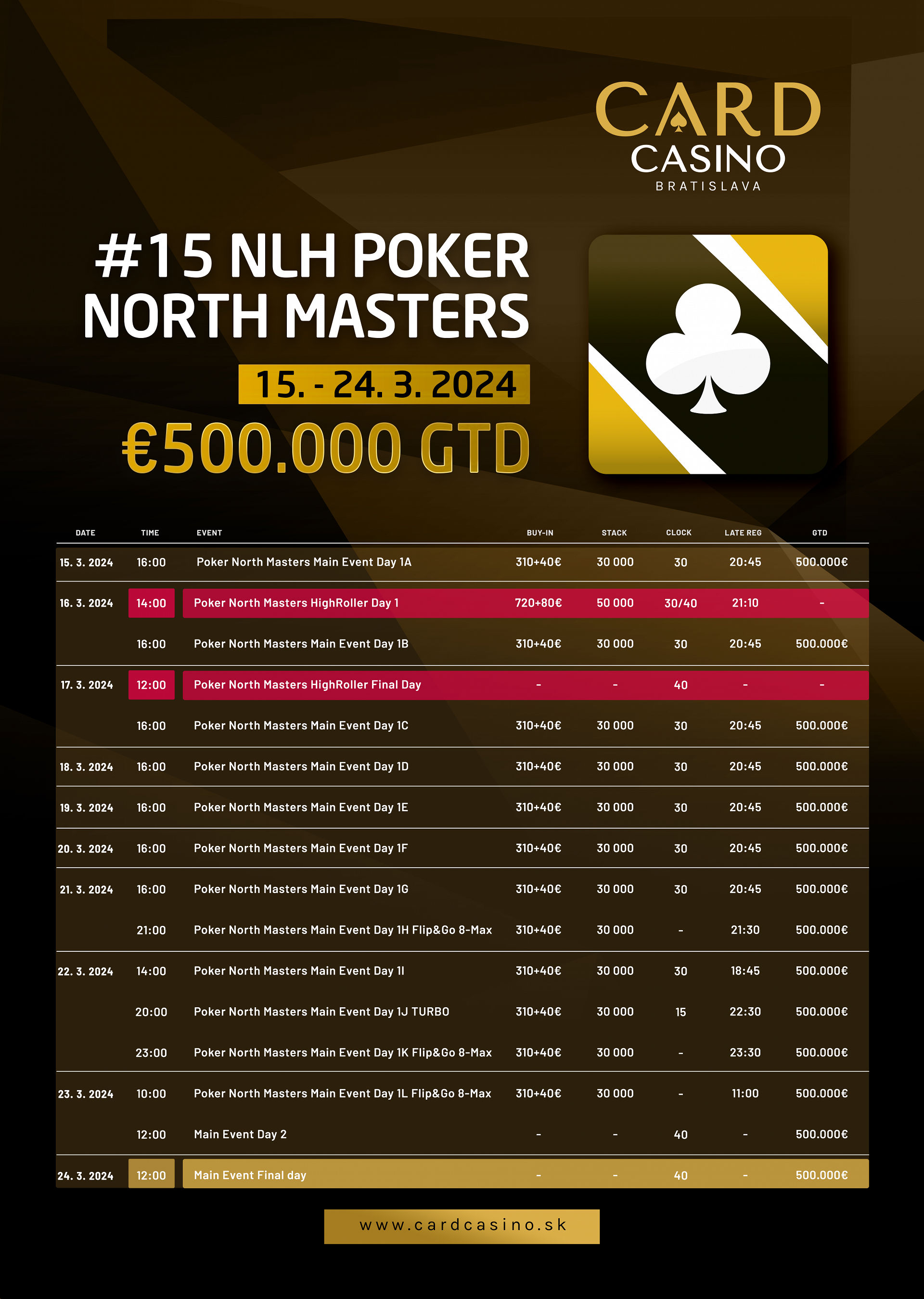 Kompletný rozpis turnajov a všetky informácie o dianí v Card Casino Bratislava nájdete na www.cardcasino.sk.