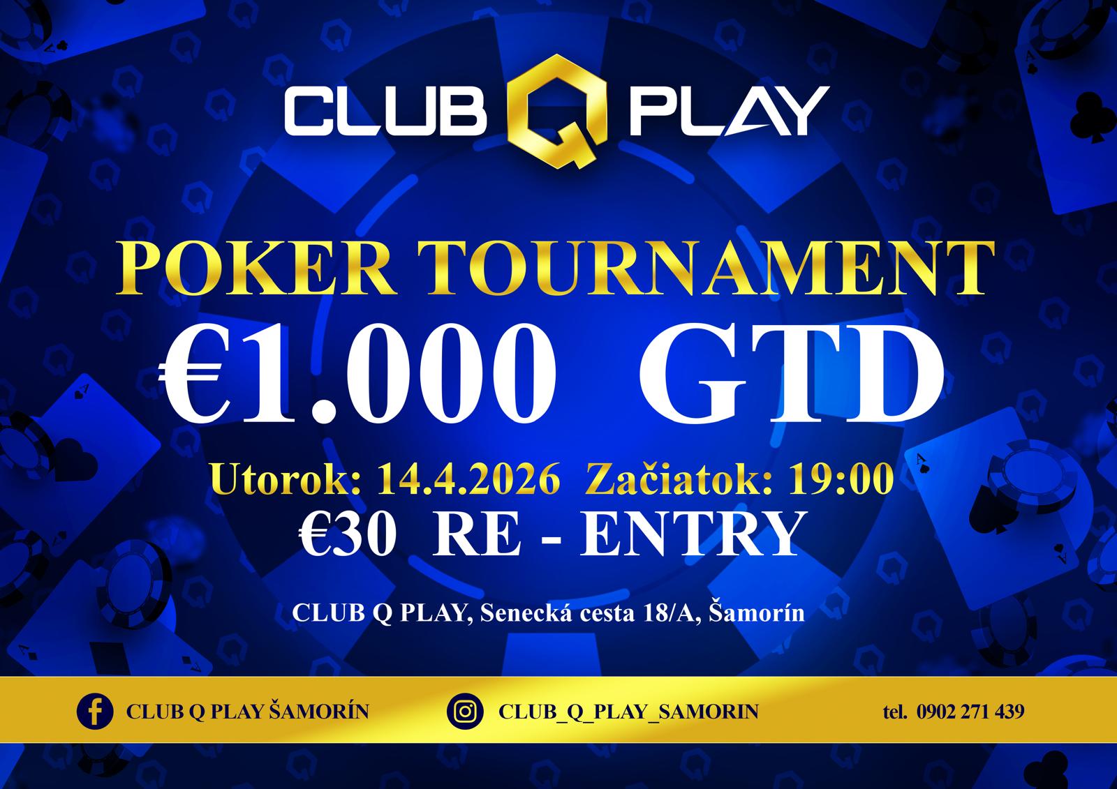 Poker je o načasovaní a to dnešné je ideálne. Príďte ukázať svoje skills, prečítať súperov a odniesť si víťaznú fotografiu s balíkom hotovosti. Garancia je nastavená motivačne a Šamorín je pripravený na poriadny pokrový večer. Sledujte aktuálne info aj na sociálnych sieťach klubu (FB: CLUB Q PLAY ŠAMORÍN, IG: CLUB_Q_PLAY_SAMORIN) alebo sa informujte priamo na telefónnom čísle 0902 271 439.
