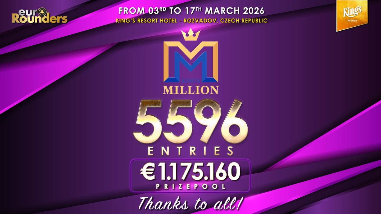 Rozvadovský pokrový chrám King’s Resort opäť raz potvrdil svoju povesť európskej jednotky. Hoci garancia milión eur pri buy-ine €250 znela ambiciózne, realita predčila očakávania. Po masívnom nápore v posledných flightoch King’s Million sa celkový počet entries zastavil na čísle 5.596, čo znamená, že v banku sa namiesto sľubovaného milióna hrá o fantastických €1.175.160.